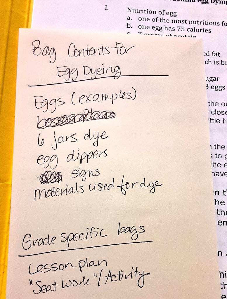 I came across a hand-written list at work yesterday, compiled a little over a year ago when I was preparing to take a natural egg dyeing museum program to almost 40 local classrooms. Not a single one of those programs happened. The note felt like it had been written in another lifetime, by another person.
