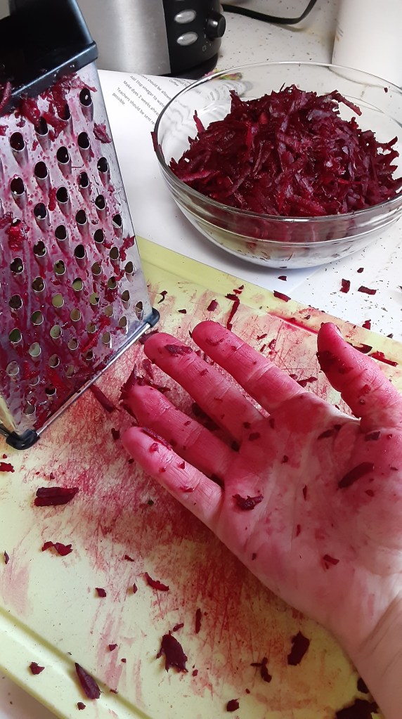 Pink. Shredding beets might make your hands and counter look like a crime scene, but it also makes a lovely pink dye. The color does fade quickly, though. (Use 1.5 cups shredded beets.)